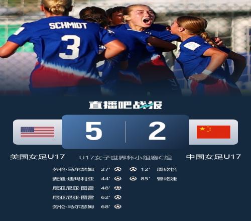 U17女子世界杯-中國(guó)2-5美國(guó)吞首敗 周欣怡、曾屹婕世界波難救主